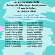 Jeunes (27 rue de Salle) de 14h à 17h Vous avez entre 16 et 25 ans appelez le 05 46 59 00 39 pour prendre rendez-vous