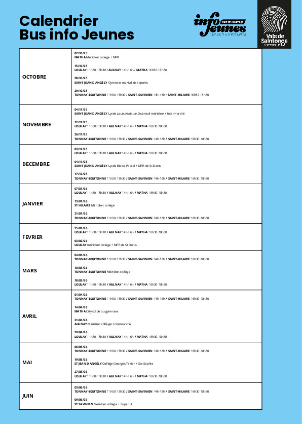 INFOS JEUNES VALS DE SAINTONGE INFO JEUNES BUS INFOS JEUNES